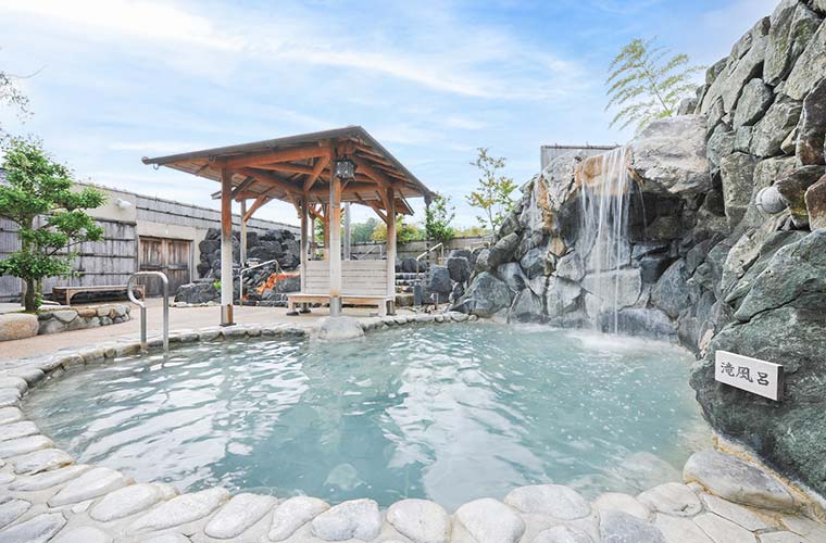 週替わりの大浴場「幸」と「福」の湯には、サウナや釜風呂のほか、各湯にあるかけ流し式の源泉風呂から湯がこんこんと湧き出ています。