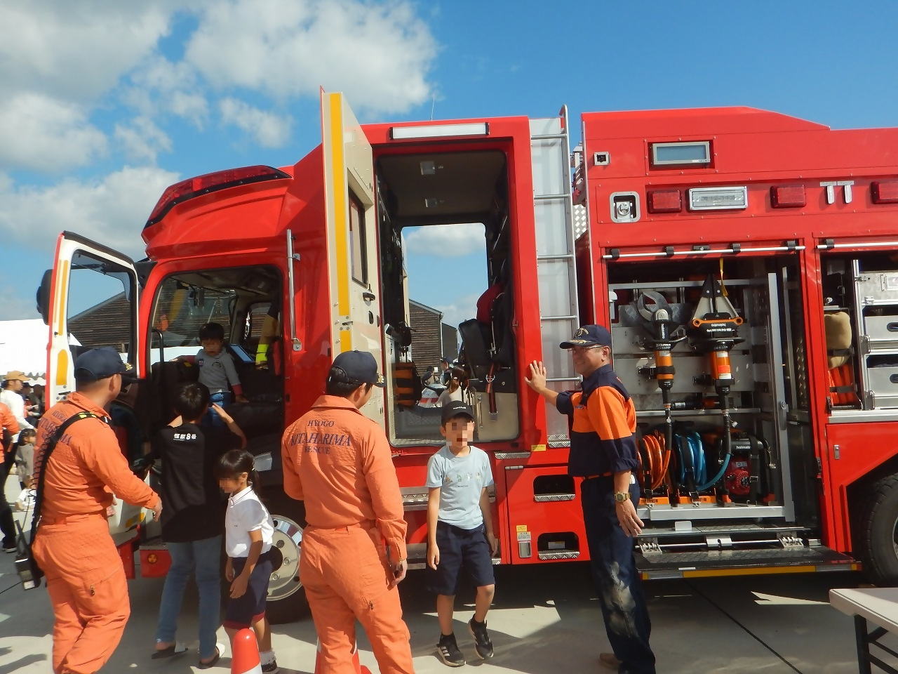 加西市消防団主催による防災について楽しく学べる体験型のイベントです。 起震車による地震体験や放水体験、消防車の乗車体験など様々な体験ができるほか、特製カレーの試食やポップコーンのプレゼントもあります。