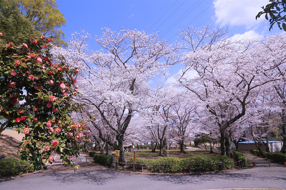 テニスコート・野球場・プール・屋内ゲートボール場があり、多くの市民に利用されています。春には満開の桜が咲き、花見を楽しむ家族連れでにぎわいます。
